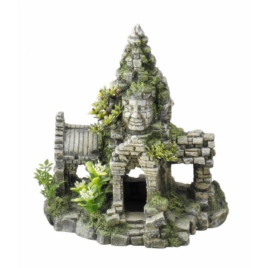 Deze natuurgetrouw weergegeven decoratie van een deel van het Cambodjaanse tempelcomplex Angkor Wat is gemaakt van polyesterhars. Deze is absoluut gifvrij en heeft geen invloed op het biologisch evenwicht van je aquarium. De decoratie is geschikt voor zowel zoet- als zoutwater aquariums, maar ook voor terrariums.