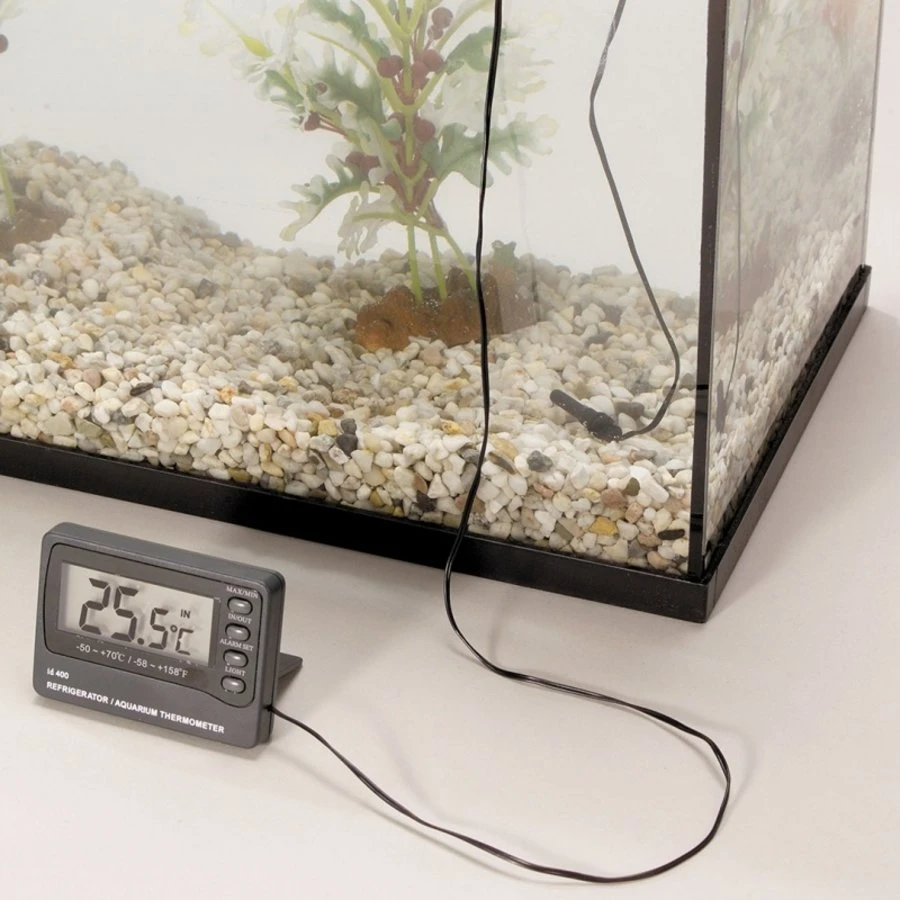 Met de digitale thermometer van Aqua D’ella kunt u eenvoudig de temperatuur aflezen in uw aquarium. Het display geeft de temperatuur duidelijk weer en de thermometer beschikt ook over een alarmsysteem voor wanneer de water temperatuur te hoog of te laag wordt. Deze waarden kunt u zelf instellen.