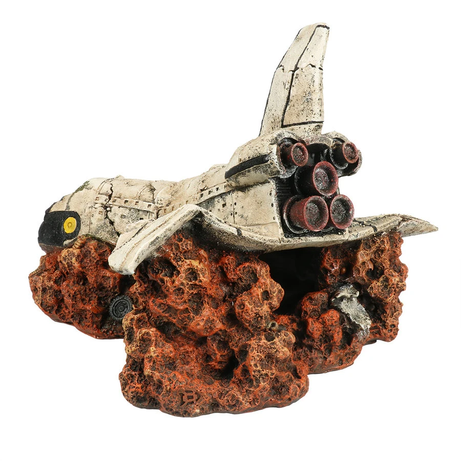 Dit ruimteschip is een ornament uit de Space serie van Aqua Della. Deze thematische ornamenten zijn op elkaar afgestemd om deze sfeer zo coherent mogelijk weer te geven. Het is gemaakt van polyestherhars. Deze decoratie is absoluut gifvrij en heeft geen invloed op het biologisch evenwicht van je aquarium. De decoratie is geschikt voor zowel zoet- als zeewateraquaria.