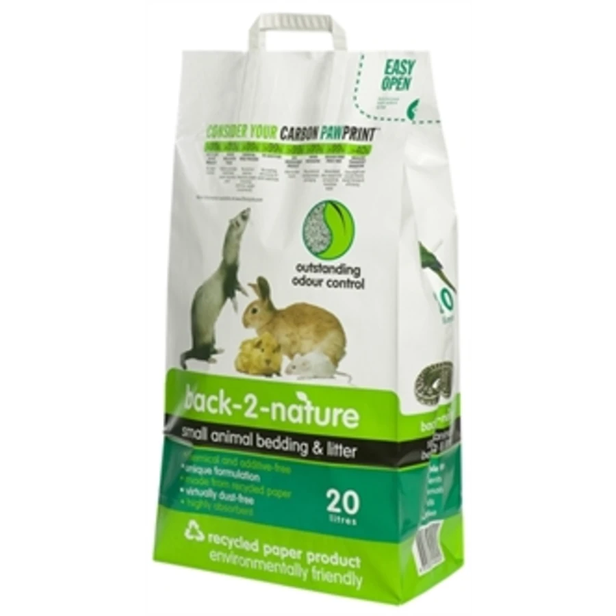 De unieke Back-2-Nature bodembedekking voor knaagdieren en andere kleine dieren is gemaakt van > 99 % gerecycled papier zonder toevoegingen of chemicaliën.