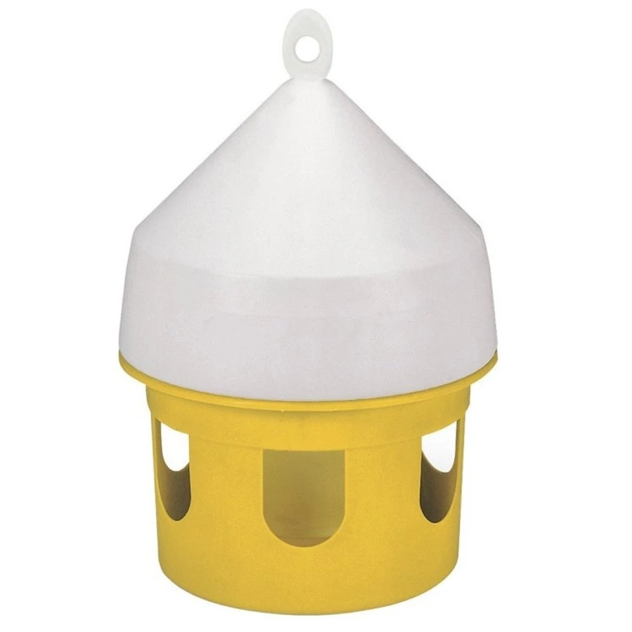 Deze gele voerbak voor duiven verdeeld het voer of water wat u erin stopt. Gemaakt van plastic en kan ook opgehangen worden. Deze gele voersilo is ideaal voor het buiten eten geven van uw duiven