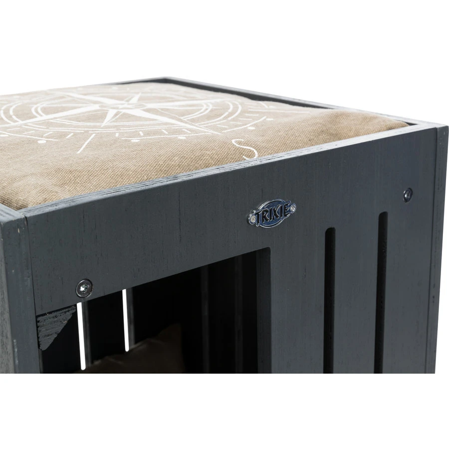 Schuilplaats Alva is een zachte plek waar uw kat tot rust kan komen. Deze schuilplaats bevat een wendbaar kussen welke aan voelt als canvas (polyester) en vulling van polyestervlies. Het kussen kan met de hand gewassen worden. De kist bevat houten pootjes en is gemaakt van gelakt triplex. Het draagvermogen van de schuilplaats is max. 40 kg.