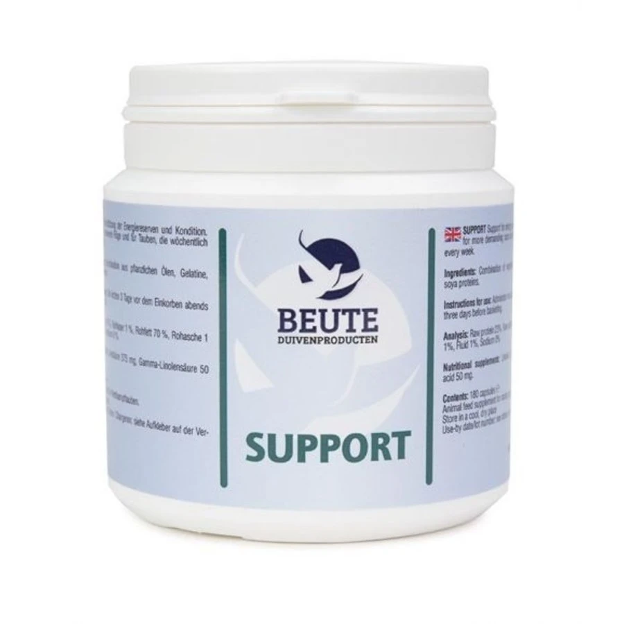De Support capsules met eiwitten en vitamines waarmee u duiven in een zwaar trainingsprogramma extra ondersteuning biedt. De capsules zijn rijk aan eiwitten van een hoge biologische waarde welke