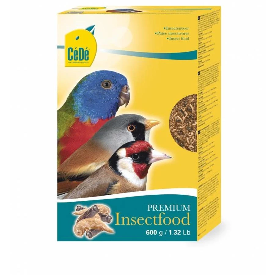 CéDé® insectenvoer is een hoofdvoer voor insectenetende vogels en een aanvullend voer voor tropische en inlandse vogels en alle parkieten en papegaaiensoorten. CéDé® insectenvoer is ideaal om het aandeel dierlijk eiwit in het dagrantsoen te verhogen. Het bevat een verscheidenheid aan gedroogde insecten en weekdieren en wordt graag opgenomen. CéDé® insectenvoer is ook de ideale tonicum om uw concoursvinken in topconditie te brengen voor de vinkenzettingen.