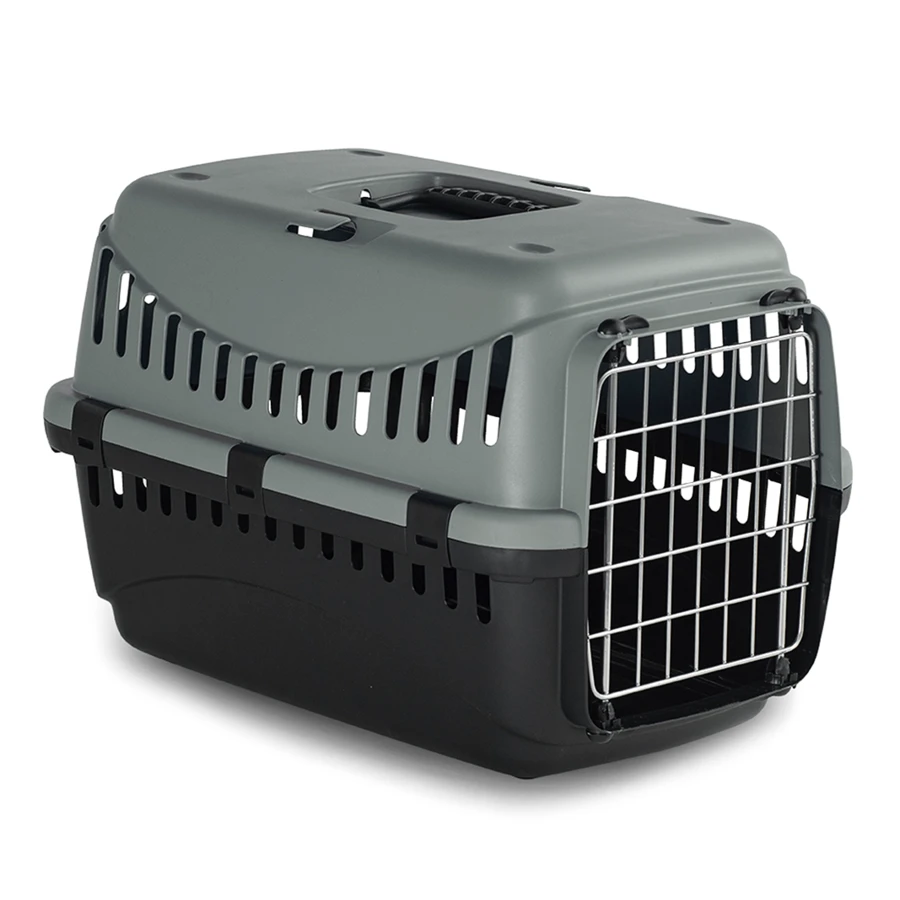 De transportmand is vervaardigd uit gerecycled plastic en kan volledig uit elkaar gehaald worden om gemakkelijk te reinigen. De openingen rondom en bovenaan zorgen voor voldoende ventilatie en verse lucht. De transportbox bevat een metalen deur met gast-lock sluiting en is veilig voor elk dier.