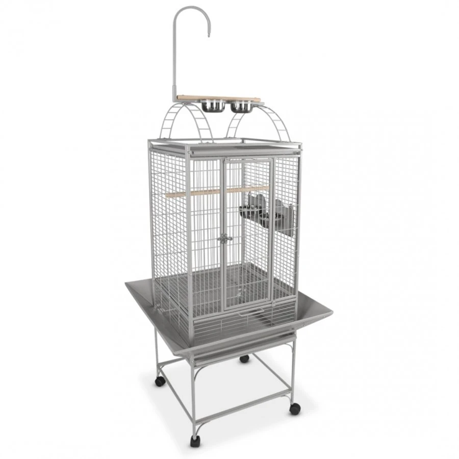 De kooi beschikt over 4 meegeleverde voer of drinkbakjes en 2 zitstokken. De kooi staat op 4 wielen waardoor deze gemakkelijk te verschuiven is. Tevens bevat de kooi een grote opvangbank rondom de kooi wat rommel op de grond voorkomt. De mestlade kan gemakkelijk vanonder de kooi geschoven worden door middel van een metalen schuif.