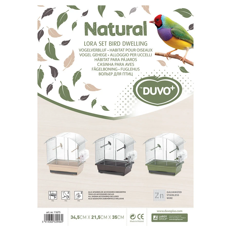 Deze Vogelkooi natural lora set 3 stuks is een kwalitatieve vogelkooi inclusief eetbak, drinkbak en twee zitstokken. De Vogelkooi is gemaakt uit gegalvaniseerde roestvrije draad en dus 100% veilig voor uw vogels. De kooi is uiterst geschikt voor kleine vogels zoals kanaries, grasparkieten en tropische vogels. Door de uitschuifbare lade is de vogelkooi gemakkelijk schoon te maken.