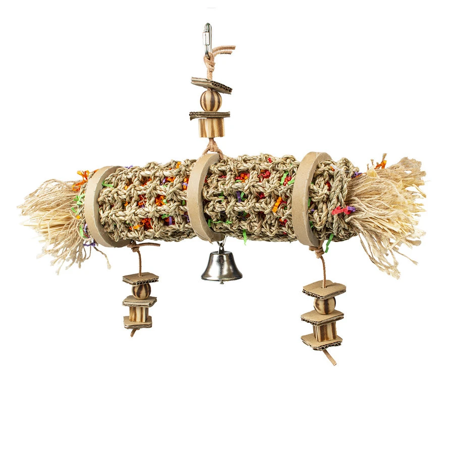 De zeegras koker met belletje is het kleurrijke speeltje waarmee uw vogel urenlang kan spelen