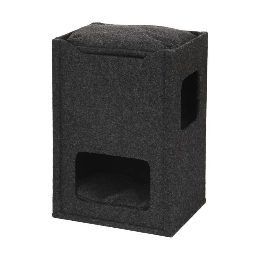 De moderne Krabpaal Cuby in hoogwaardig vilt biedt een speels kraboppervlakte en een comfortabel liggedeelte voor de kat. De grote sisal krabzijde biedt de kat voldoende lengte om de nagels aan te scherpen. De krabbox heeft twee openingen met een zacht kussen, zodat de kat zich kan terugtrekken en heerlijk kan wegdromen. De bovenkant van de krabbox biedt een ruime, comfortabele ligplaats van waaruit de kat het overzicht kan bewaren.