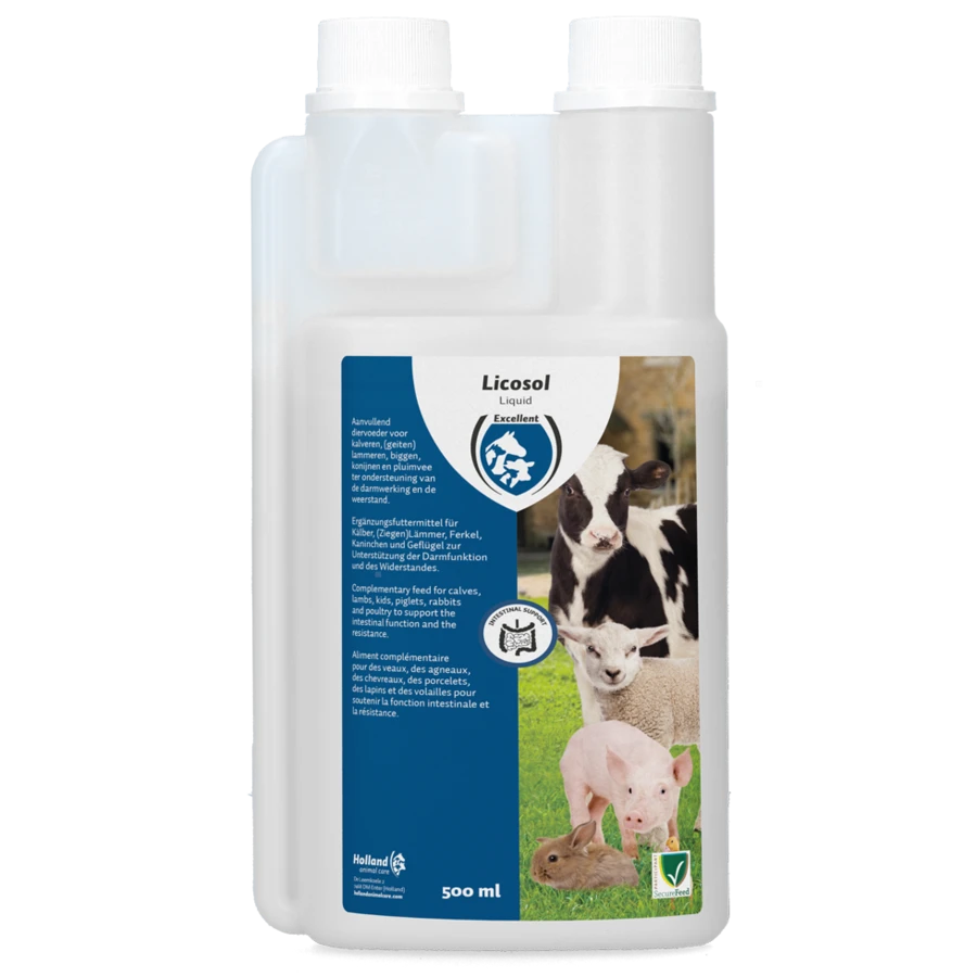 Licosol voor jonge dieren is het aanvullend diervoeder oor kalveren, (geiten)lammeren, biggen, konijnen en pluimvee ter ondersteuning van de darmwerking en de weerstand.