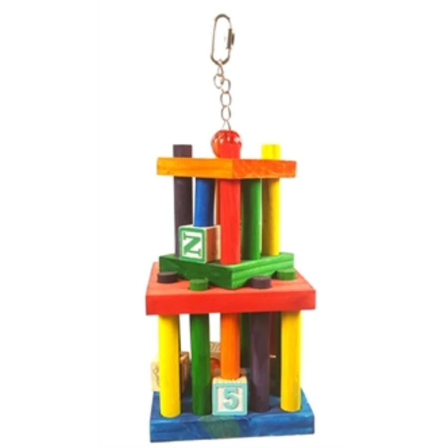 Het vogel doolhof van Happy Pet is een kleurrijk vogelspeelgoed vervaardigd uit diverse grondstoffen, zoals acryl, touw en hout. Het drie verdiepingen tellende houten speelgoed bevat geen giftige kleurstoffen en is een lust voor het oog.