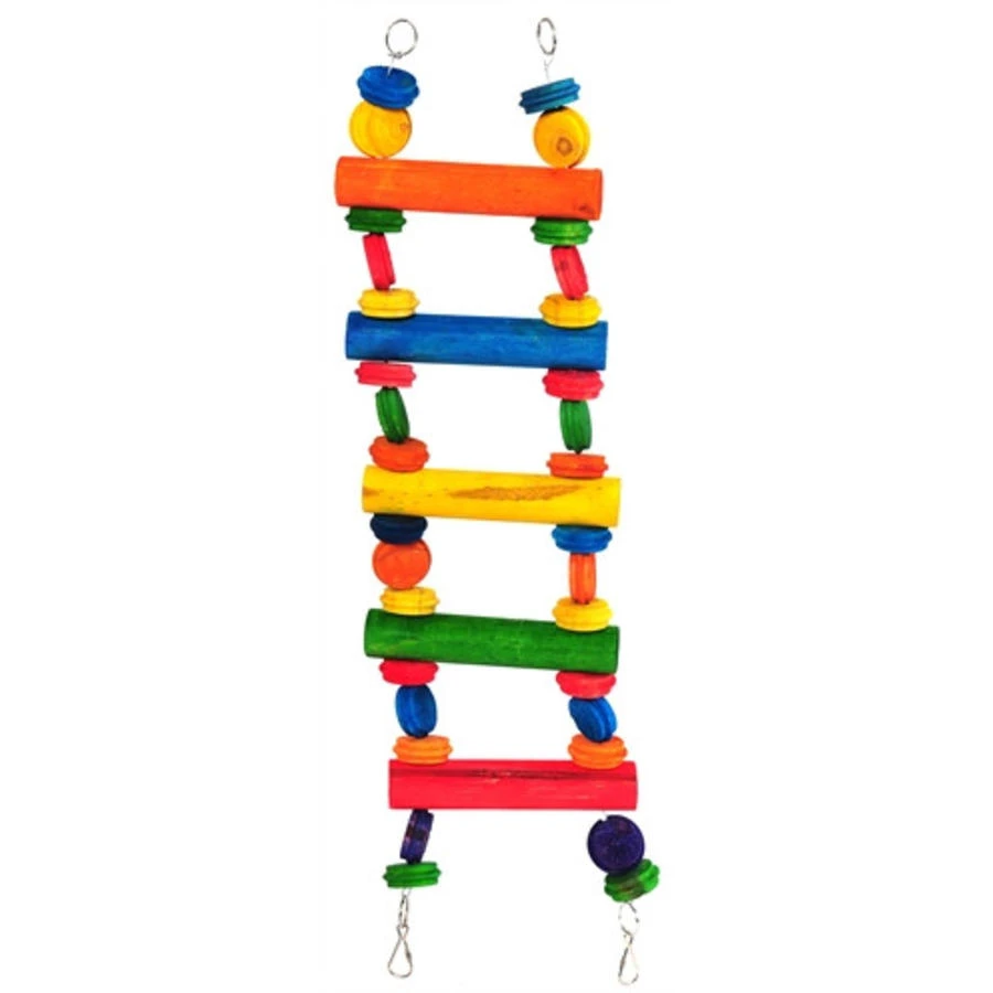 De Happy Pet Playtime multiwood brug is vogelspeelgoed in de vorm van een ladderbrug. De brug is gemaakt van 100% natuurlijk hout en met speciale verf geverfd die niet schadelijk is voor de vogel. Met behulp van de metalen haken kunt u het speelgoed gemakkelijke in kooi bevestigen. De felle kleuren daagt ze uit om het speelgoed te verkennen met snavel en poten.