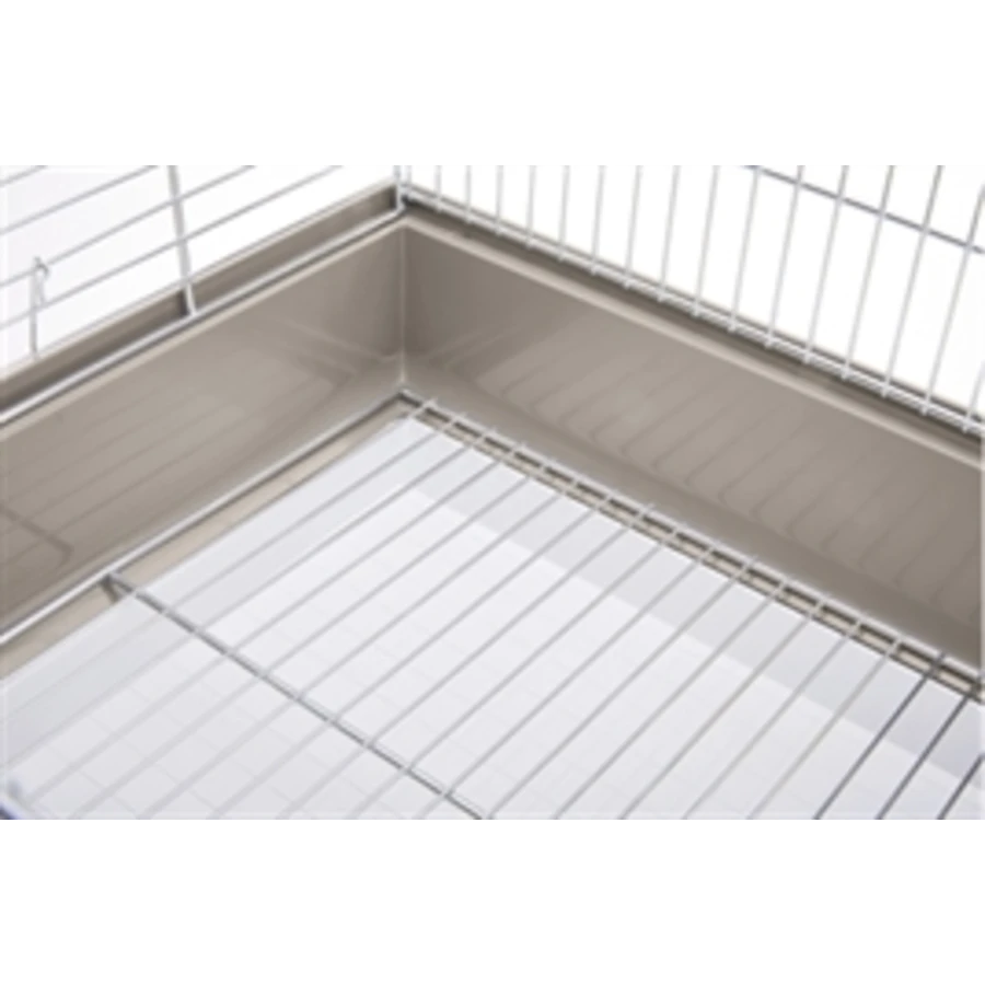 De kooi heeft een hoge onderbak die troep helpt verminderen en een schuiflade voor eenvoudig schoonmaken. Bijgeleverd zijn twee zitstokjes en een schommeltje, net als vier voer- of drinkbakjes. Door de mooie kleurencombinatie past de kooi in elk interieur.