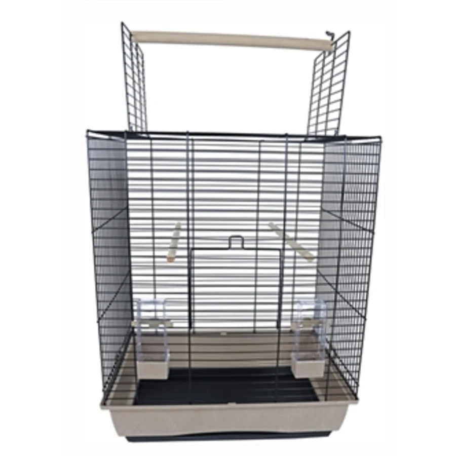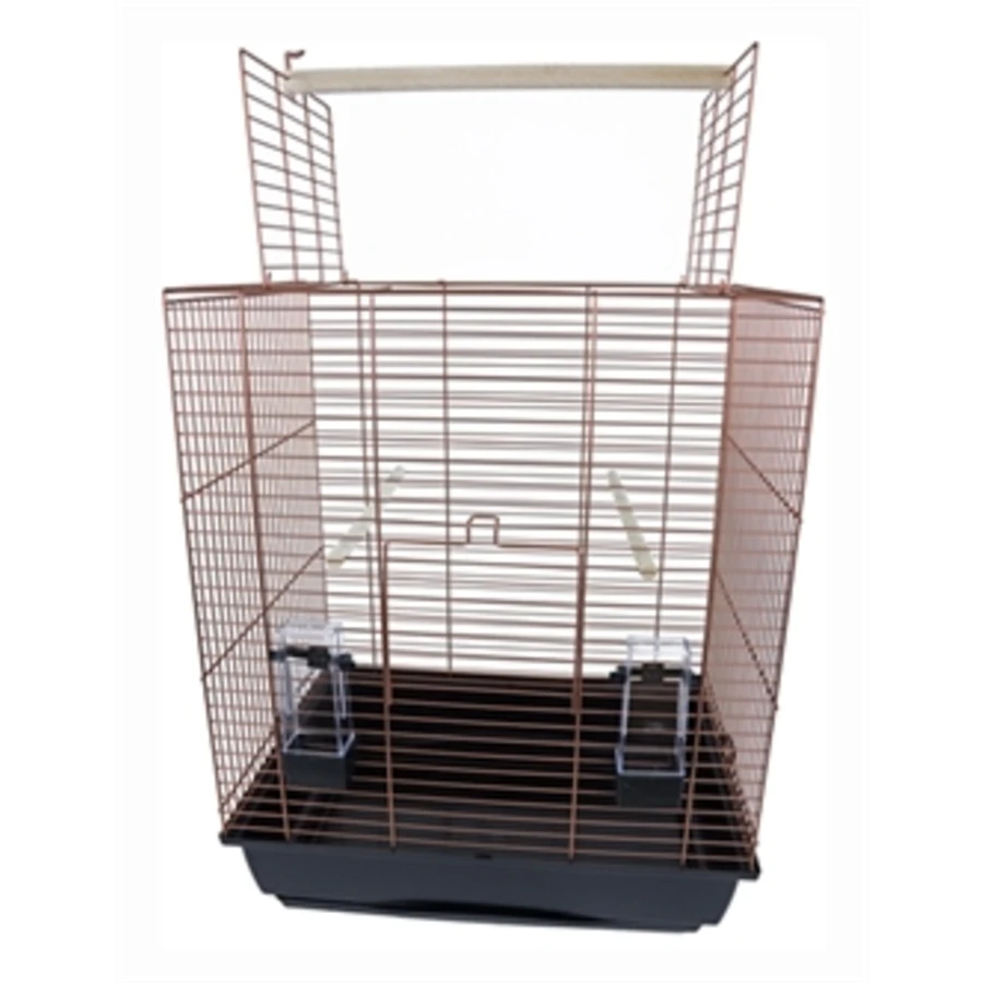Vogelkooi voor parkieten en kleine papegaaien. Met twee zitstokken voor in de kooi en een zitstok voor in de dakopening zodat uw vogels genoeg plek hebben om te kunnen rusten en te spelen.