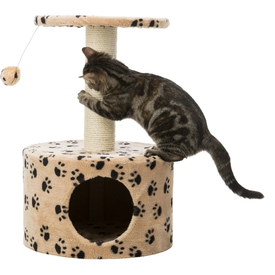 Krabpaal toledo is een kleine krabpaal waarmee elke jonge kat kan beginnen. Deze paal bevat een schuilplaats met binnenin pluch (polyester). De ligplateau is bekleed en de paal is gemaakt met sisal: ø 6 mm/pluche(polyester): 200 g/m².