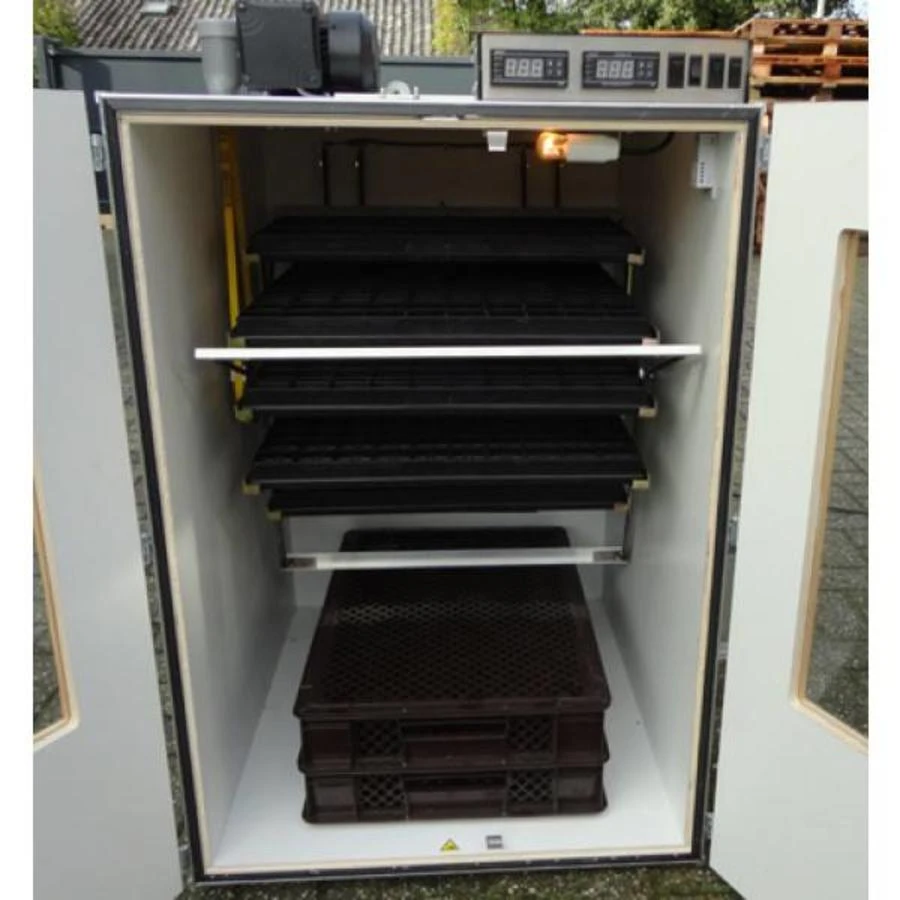 Onderin deze machine kunt u eieren uit laten komen, er worden 2 uitkomstkratten meegeleverd. Hierin kunt u per keer plmn 100 eieren laten uitkomen. Wilt u alle 400 eieren in 1x keer laten uitkomen dient u een uitkomstmachine te gebruiken.