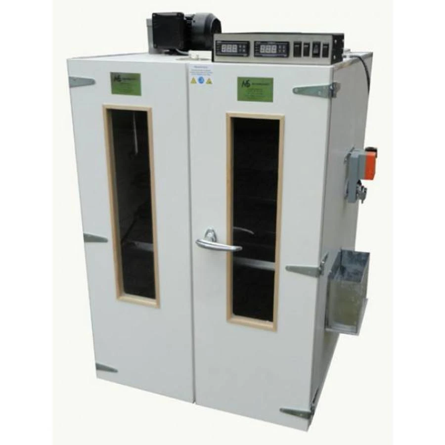 MS Broedmachines maakt 2 soorten broedmachines, de standaard ventilator machines en deze bekende slaglatten machines. Het voordeel van de slaglatten machines is dat de warmte nog beter verdeeld wordt door de hele kast heen. Een slaglatten machine kenmerkt zich door de “wieken” die in een cirkel om de eieren heen draaien. Binnen in deze cirkel keren de eieren op en neer.