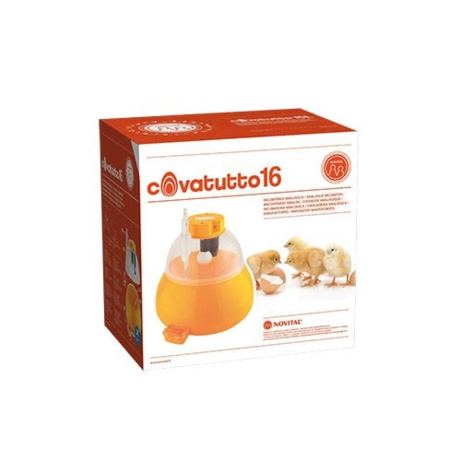 De Covatutto 16 is een basis broedmachine met ruimte voor ongeveer 16 kippeneieren. De machine beschikt over een analoge thermometer waarop u de 100 graden Fahrenheit af kan lezen. De machine staat standaard ingesteld op deze temperatuur, maar kan eventueel door middel van een stelschroef aangepast worden.