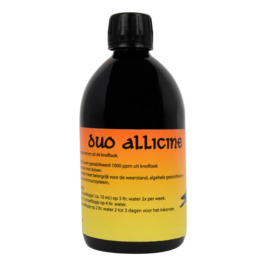 Allicine Concentraat is een gestabiliseerd 1000 ppm uit knoflook gewonnen concentraat voor duiven. Dit concentraat is onder meer belangrijk voor de weerstand, algehele gezondheid en ondersteuning van het immuunsysteem.