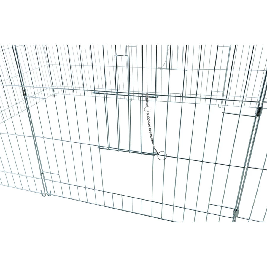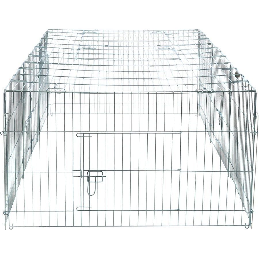 Deze buitenren is gemaakt van sterk gepoedercoat metaal en bevat 2 valdeuren om een natura kleindierverblijf tegenaan te zetten. De ren heeft 1 grote deur in de afdekking en 1 grote zijdeur. Daarnaast bevat het ook haringen. Zonwering niet inbegrepen deze zijn apart verkrijgbaar.