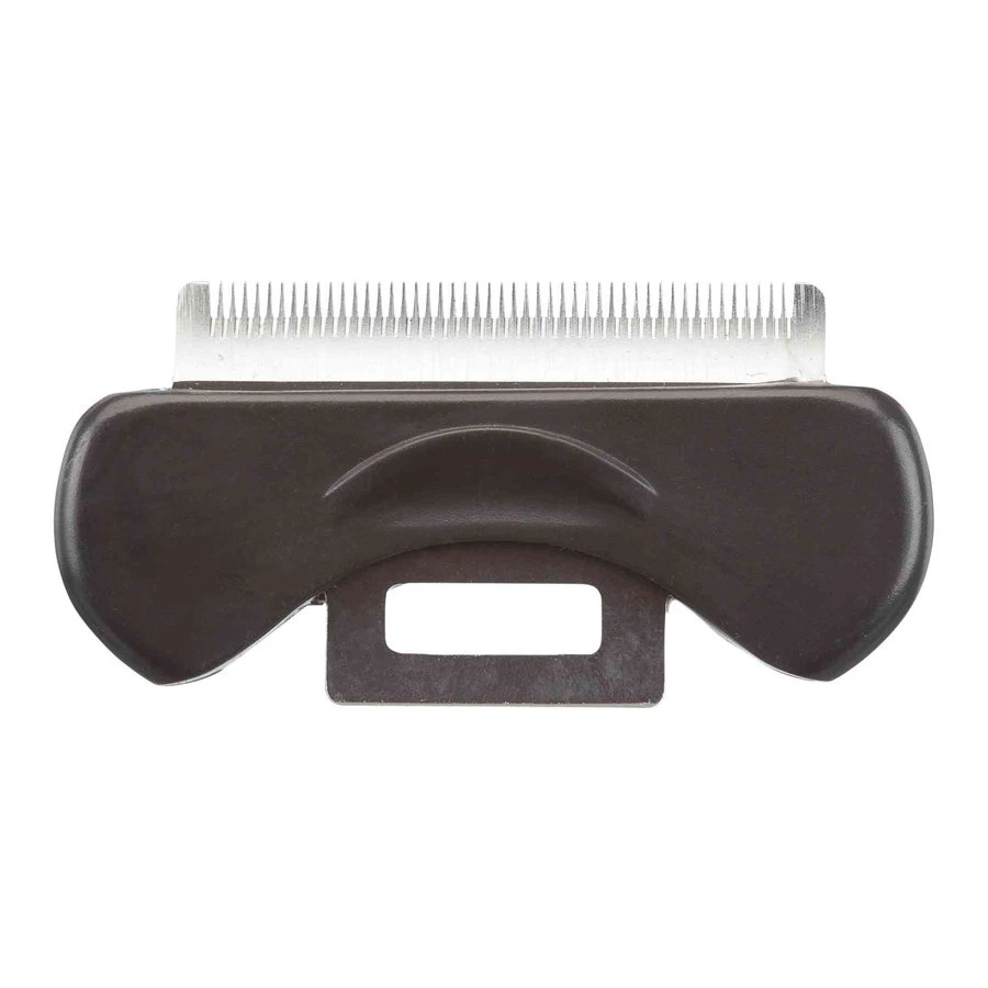 De Carding-Vachtkam voor Katten verwijdert losse ondervacht en heeft een verwisselbare opzetkam. Daarnaast is de kam ook geschikt voor kort- en gladhaar. Deze kam is gemaakt met een kunststof handvat met rubberen coating en bevat een RVS mesje.