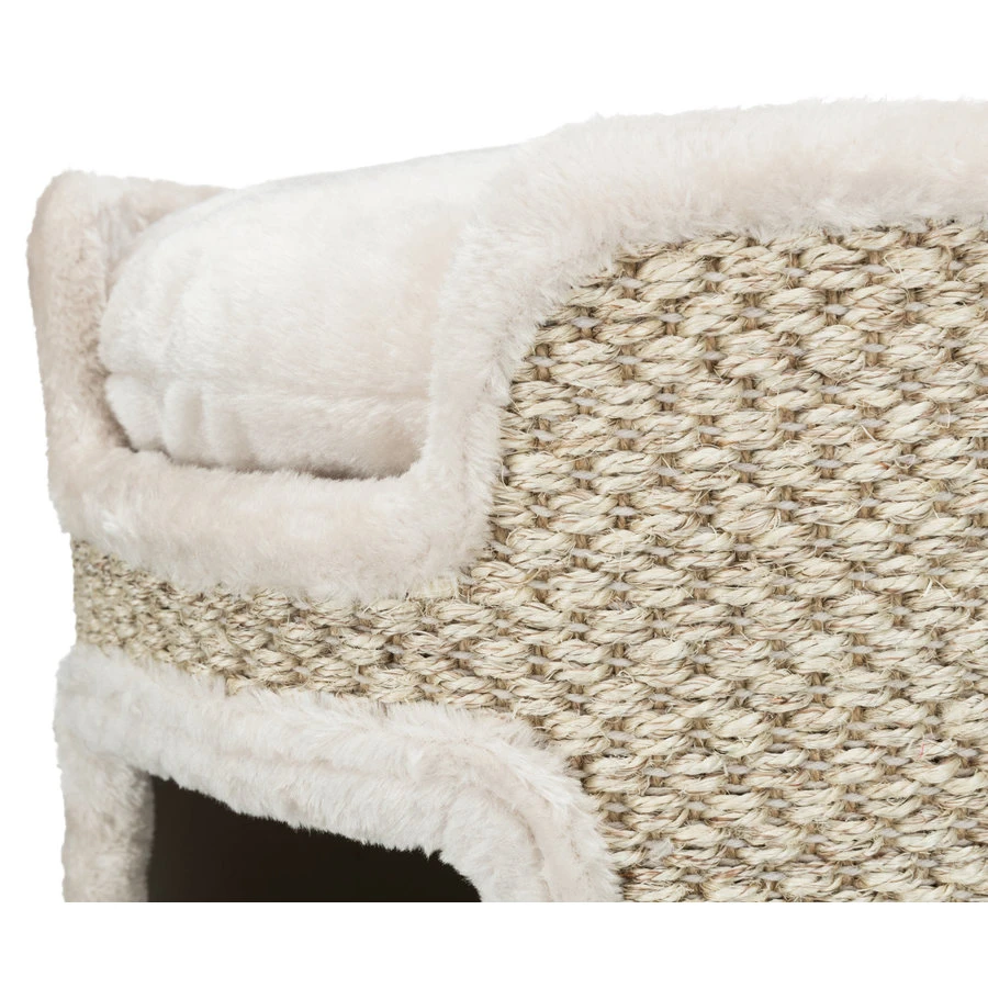 Cat tower Ria is een krabtoren gemaakt met zachte materialen en zorgt ervoor dat uw kat kan ontspannen. De toren bevat een schuilplaats binnenin met pluche/fleece (polyester) en een wendbaar kussen. Dit kussen is met de hand te wassen. Daarnaast heeft de toren een gevoerde ligplateau waar uw kat kan bijkomen van al het krabben. De toren is gemaakt met sisal/pluche (polyester): 280 g/m².