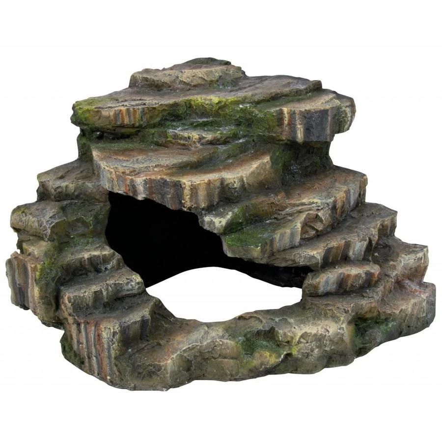 Ruimtebesparende schuilplaats voor uw reptielen. In 3 verschillende maten en 2 verschillende prints: regenwoud- of steppe-look. Vervaardigd uit polyesterhars, dus gemakkelijk schoon te maken. Ook geschikt voor aquaria.