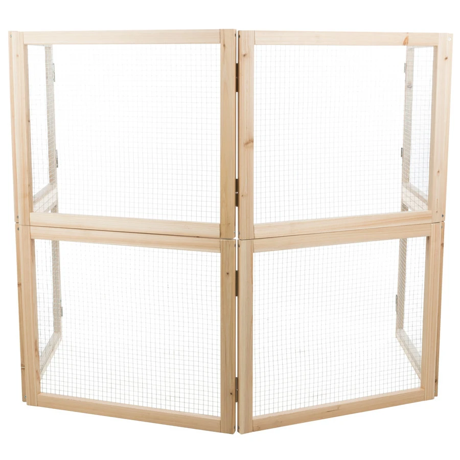 De ren is gemaakt van onbehandeld hout met metaal, in vier panelen. De panelen zijn op verschillende manieren in elkaar te zetten en uit te breiden: je kunt de ren groter maken, maar ook hoger door er nog een ren op te zetten. Ideaal voor konijnen die hoog springen en uit de ren ontsnappen!
