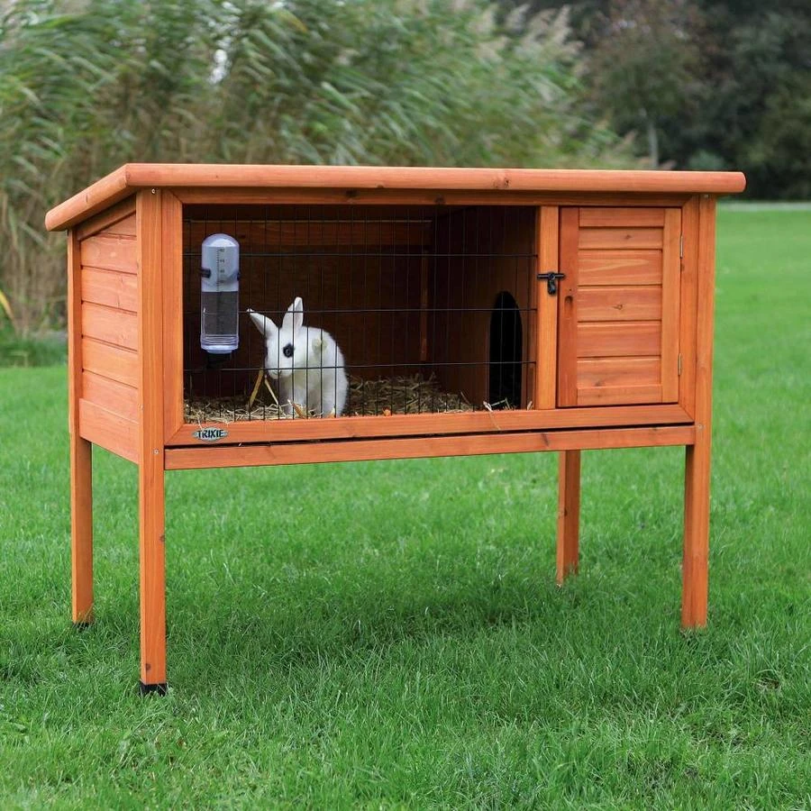 Het kleindierhok van Trixie is een stevig buitenhok van gebeitst vurenhout en stevig metalen, gepoedercoat traliewerk. Het beschikt over een bitumen dak. De poten van het hok zijn in hoogte verstelbaar en het hok is makkelijk te verschonen door de kunststof uitschuiflade. Het dak is van bovenaf te openen.