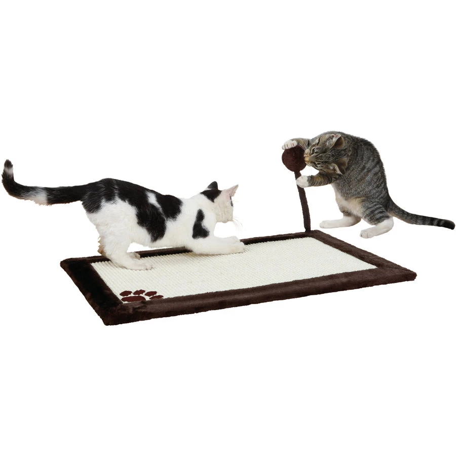 De Krabmat met pootafdruk helpt uw kat eenvoudig aan zijn/haar krabbehoefte. De mat is op te hangen of neer te leggen. De krabmat heeft een EVA-achterkant. De krabmat is gemaakt met sisal en pluche (polyester).