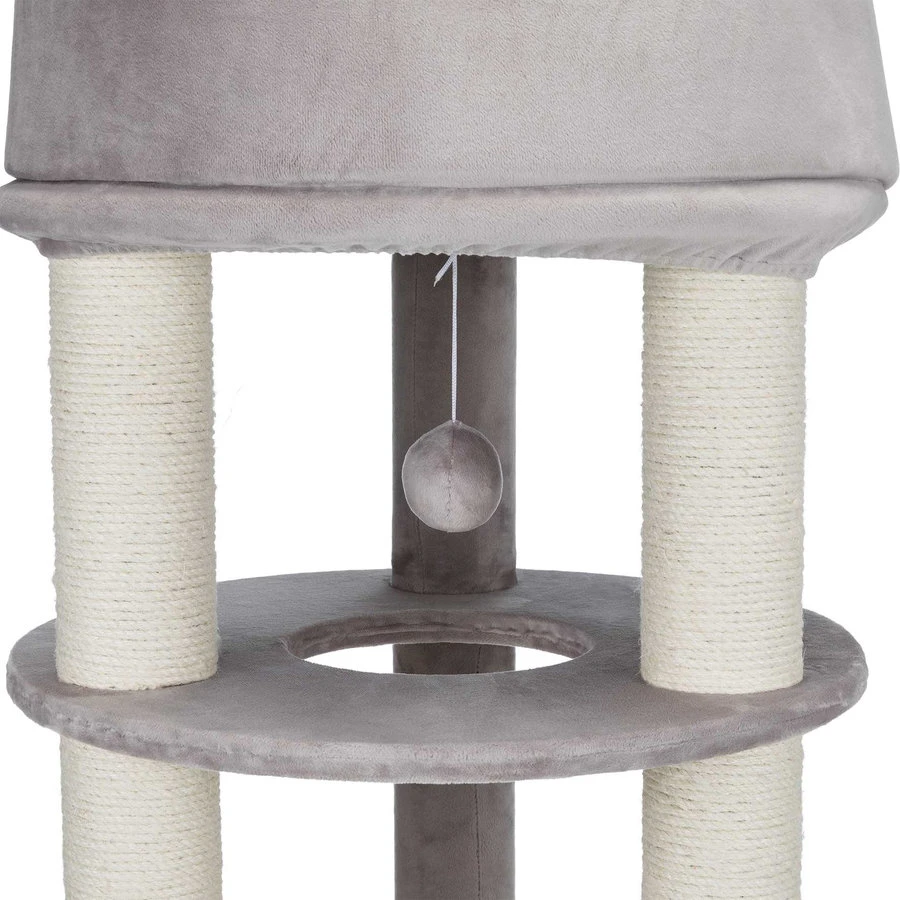 Krabpaal Lavinia is een krabpaal gemaakt met verschillende verdiepingen waarop uw kat kan klimmeb. Een ligplateau heeft een afneembare relax-mand welke met de hand te wassen is. De schuilplaats heeft binnenin een zachte structuur pluche (polyester) en 2 wendbare kussens. Deze krabpaal is gemaakt met jute: ø 6 mm/zacht structuur pluche (polyester): 280 g/m².