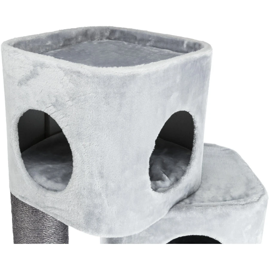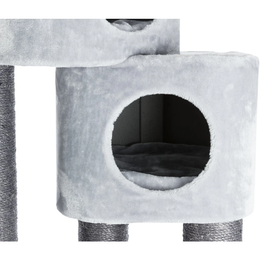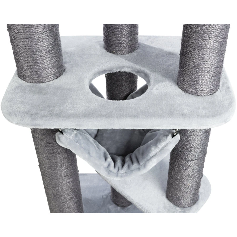 Krabpaal Pirro is een krabpaal welke geschikt is voor meer dan alleen krabben. Deze paal heeft schuilplaatsen met binnenin pluche/fleece (polyester). Met de 2 wendbare kussens ligt uw kat heerlijk zacht. Deze kunnen met de hand gewassen worden. In de afneembare hangmat kan uw kat bijkomen van het speelplezier. De mat is gevoerd en kan ook met de hand worden gewassen. De paal is gemaakt met sisal: ø 6 mm/pluche (polyester): 600 g/m².
