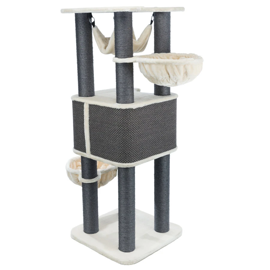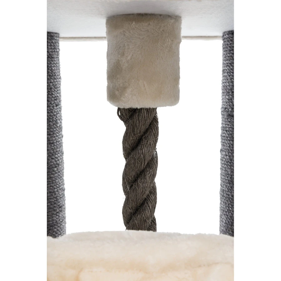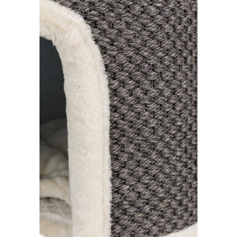 Krabpaal XXL Humberto is ontworpen voor het krabplezier en het relaxen van uw grote kat. Deze krabpaal bevat twee stevig gevoerd relax-slaapzakken. Daarnaast heeft het een afneembare hangmat welke gevoerd is en met de hand kan worden gewassen. De schuilplaats bevat pluche/fleece (polyester) en een wendbaar kussen binnenin. Het kussen kan met de hand worden gewassen. De paal is gemaakt met sisal: ø 6 mm (stam)/pluche (polyester): 600 g/m². Om de krabpaal staande te houden bevat het een dikke, massieve bodemplaat.