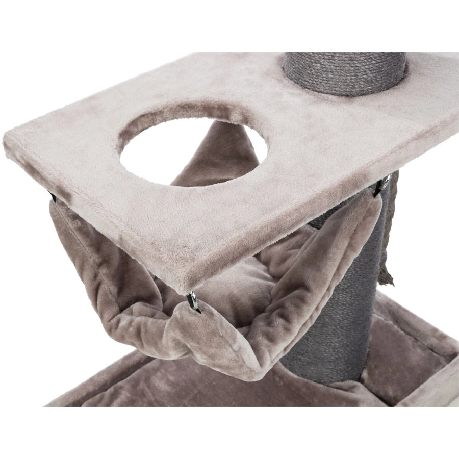 Krabpaal XXL Ramon is een zachte krabpaal ontworpen voor de krabbehoefte van grote katten. Deze krabpaal bevat een afneembare hangmat welke is gevoerd. De krabpaal heeft een relax-mand met wendbaar kussen. Dit kussen is met de hand te wassen. De paal is gemaakt met sisal: ø 6 mm/pluche (polyester): 600 g/m². De bodemplaat heeft een rand en uitneembaar kussen.