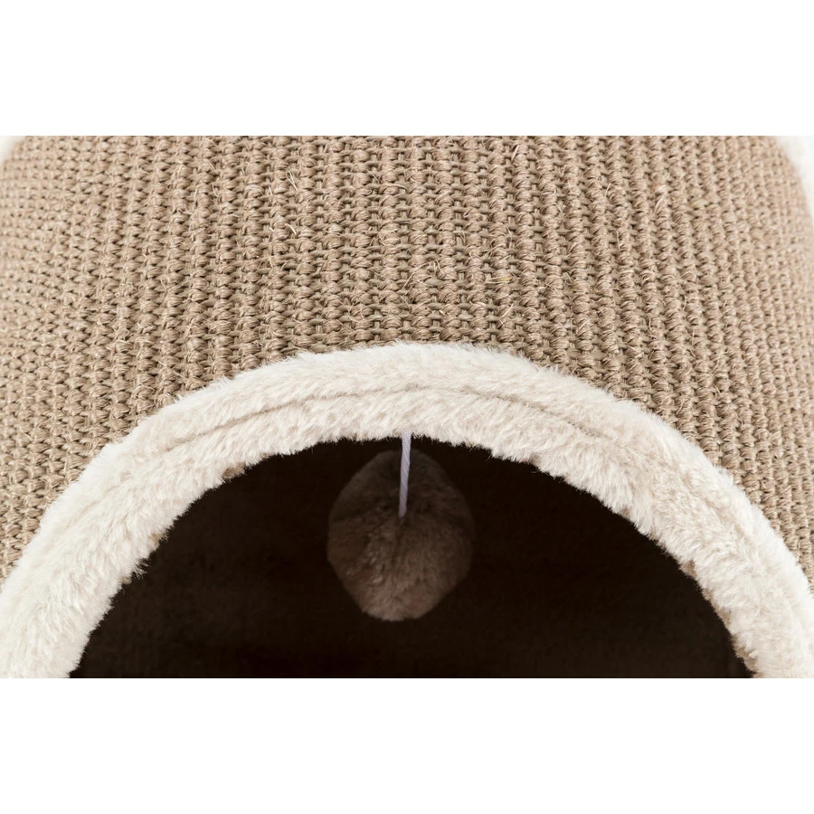 Deze Krabtunnel met sisal is ideaal voor katten die graag hun klauwen gebruiken. Deze tunnel bevat 2 schuilplaatsen met sisal-krabvlak. De schuilplaats binnenin is geheel met pluche bekleed (polyester). Aan de koorden binnenin bevinden zich speeltjes. Deze tunnel is gemaakt van sisal en pluche (polyester).