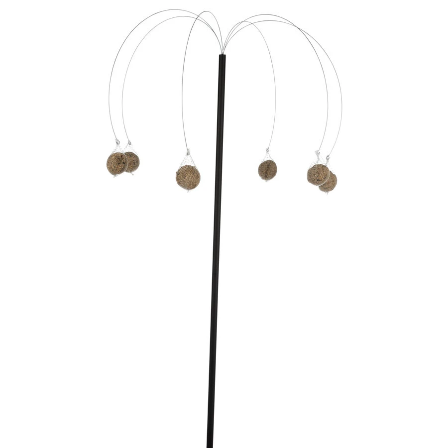 Aan de zes houders kun je elk één mezenbol hangen. De mezenbollenhouder is gemaakt van gepoedercoat metaal en dus geschikt voor weer en wind.