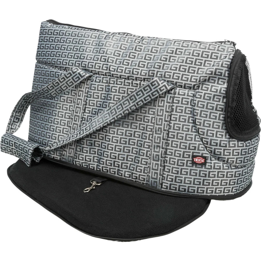 Tas Riva waarmee uw kat warm en comfortabel met u mee reist. De gevoerde tas is aan bovenkant te openen en bevat een gaas-inzetstuk met ritssluiting aan de voorkant. De tas bevat een buitenvak, geïntegreerde korthouder en afneembare schouderriem. De tas is gemaakt met een jacquard print (polyester) en heeft een binnenvoering van fleece.