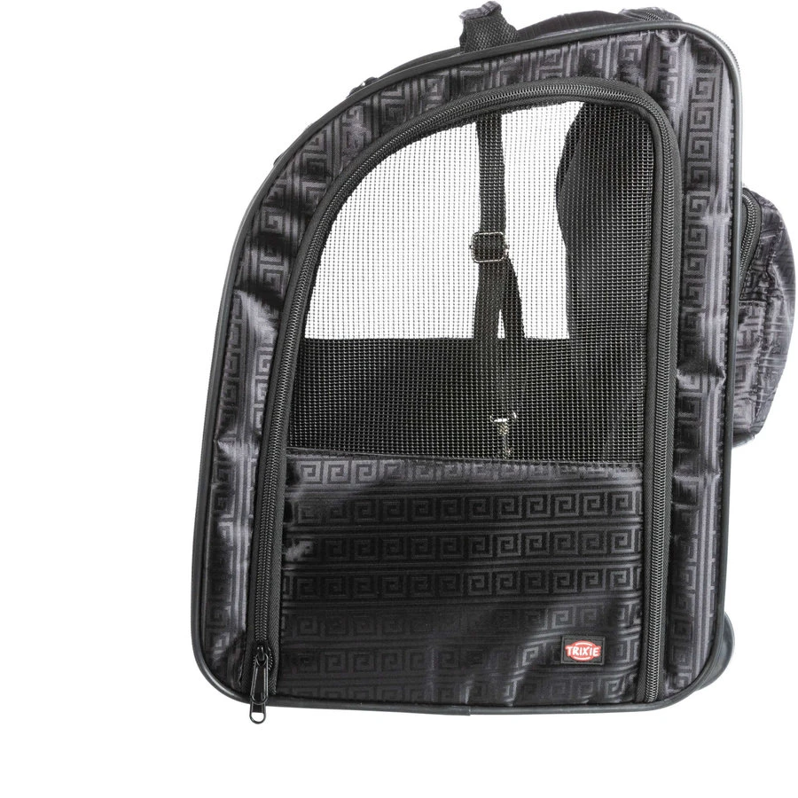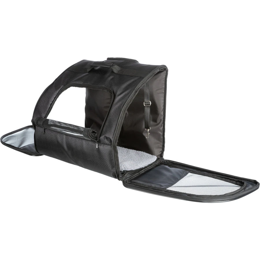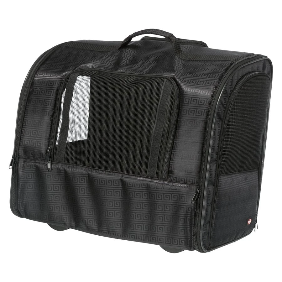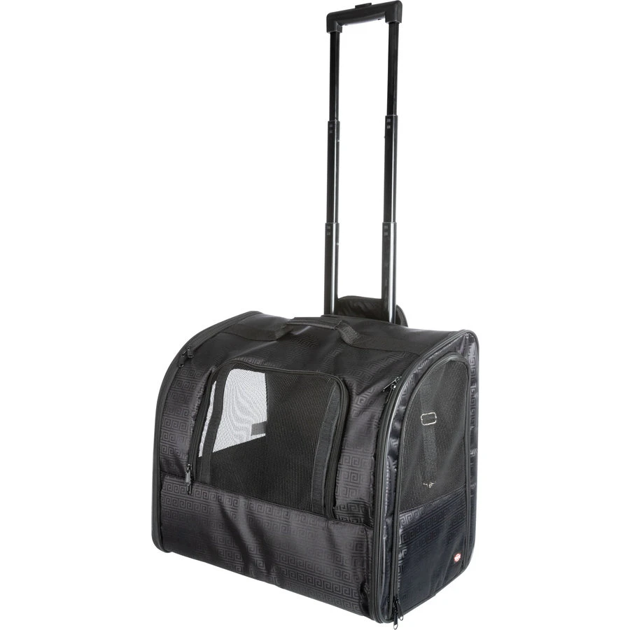 Trolley Elegance is een makkelijk te gebruiken trolley voor het vervoeren van uw kat. De trolley bevat een inschuifbaar telescoop-handvat en is aan de zij- en voorkant te openen. Daarnaast bevat het buitenvakken en een geïntegreerde korthouder. De bodemplaat bekleed met schapenvacht look/nylon is eenvoudig uit de trolley de halen. De trolley is gemaakt met een polyester jacquard print.