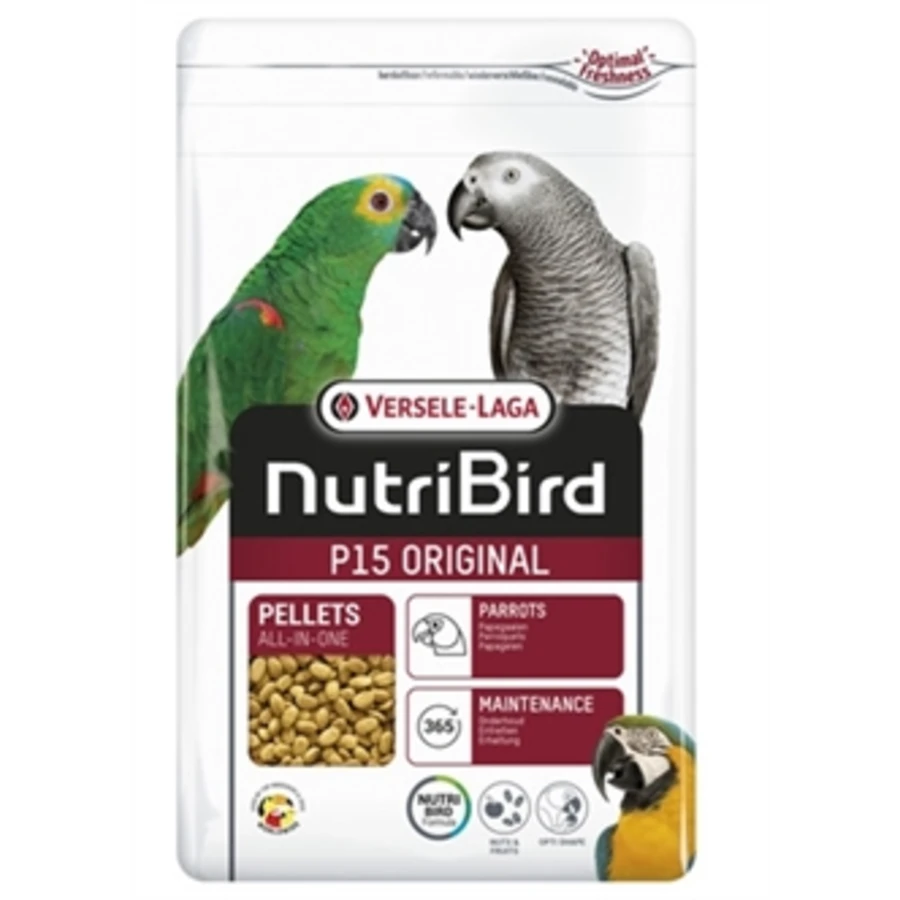 NutriBird P15 Original is een uitgebalanceerd volledig onderhoudsvoeder voor papegaaien. Het zijn pellets met een wetenschappelijk verantwoorde samenstelling, op basis van geselecteerde granen, verse vruchten en aardnoten. Volledig opneembaar, geen verlies. Bevat Florastimul, wat de darmflora ondersteunt en tegen darmstoornissen behoedt.
