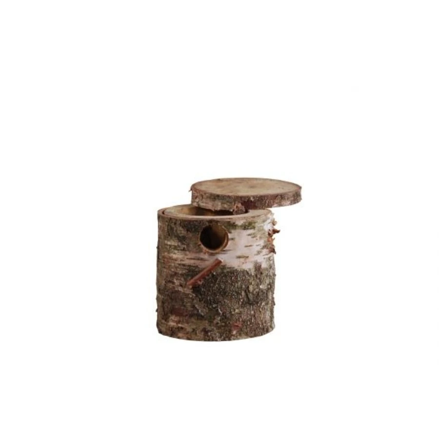 Deze berkenblok nestkast voor agapornide zorgt voor een natuurlijke uitstraling in bijvoorbeeld een volière. Dak draait opzij weg voor eenvoudige nestinspectie en het schoonmaken.