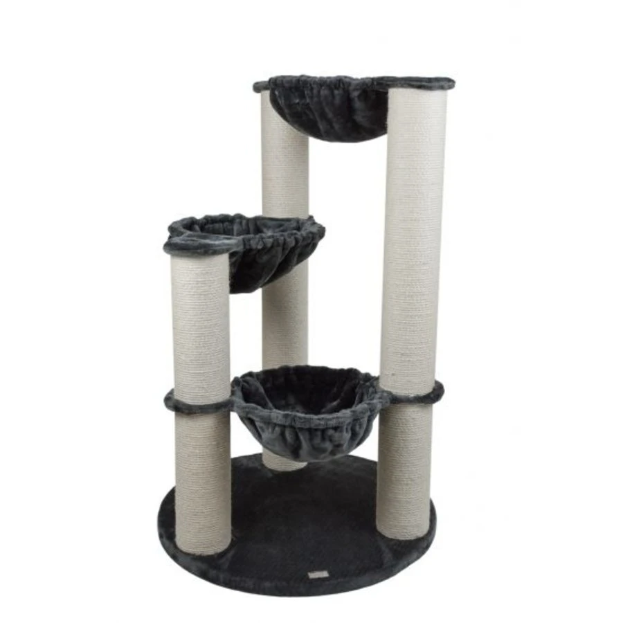 De Phoenix Dark grey krabpaal is gemaakt van de allerbeste kwaliteit en bekleed met pluche. De krabpaal is speciaal ontworpen voor de zwaardere en grotere rassen. Deze extra luxe krabpaal is voorzien van drie ruime verstevigde hangmatten en heeft sisalpalen met een dikte van maar liefst 12cm.