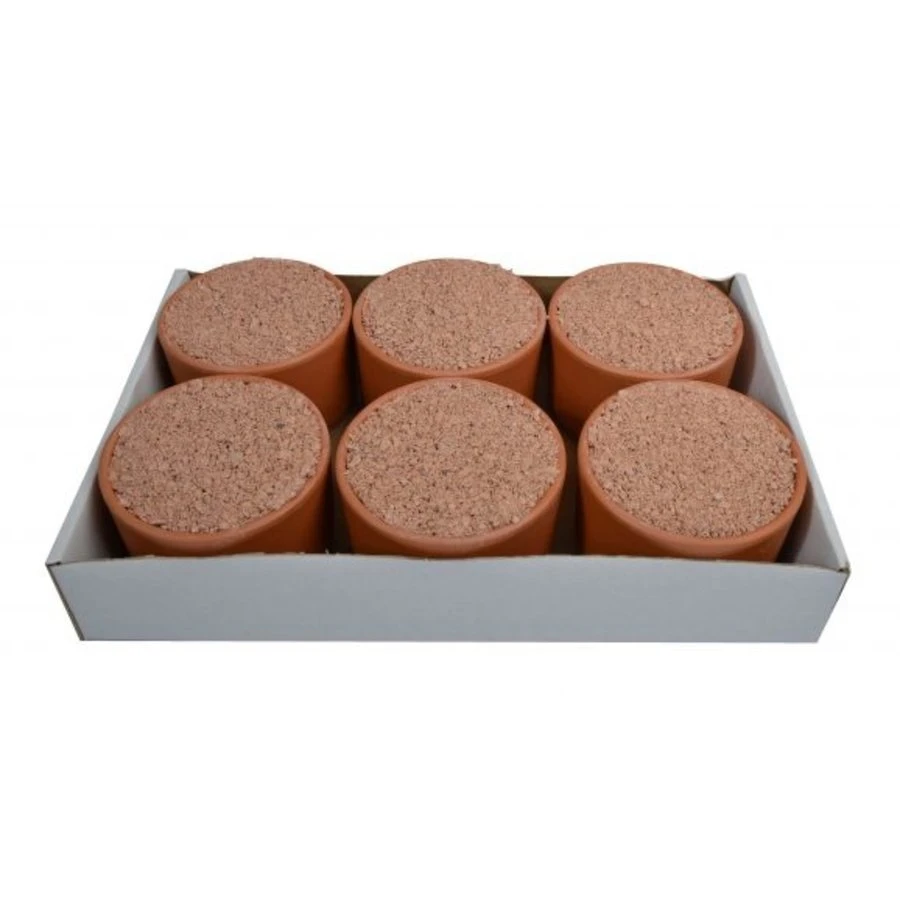 Deze pikpot is een mineraal mengsel met oesterschelpen en maagkiezels voor duiven.
