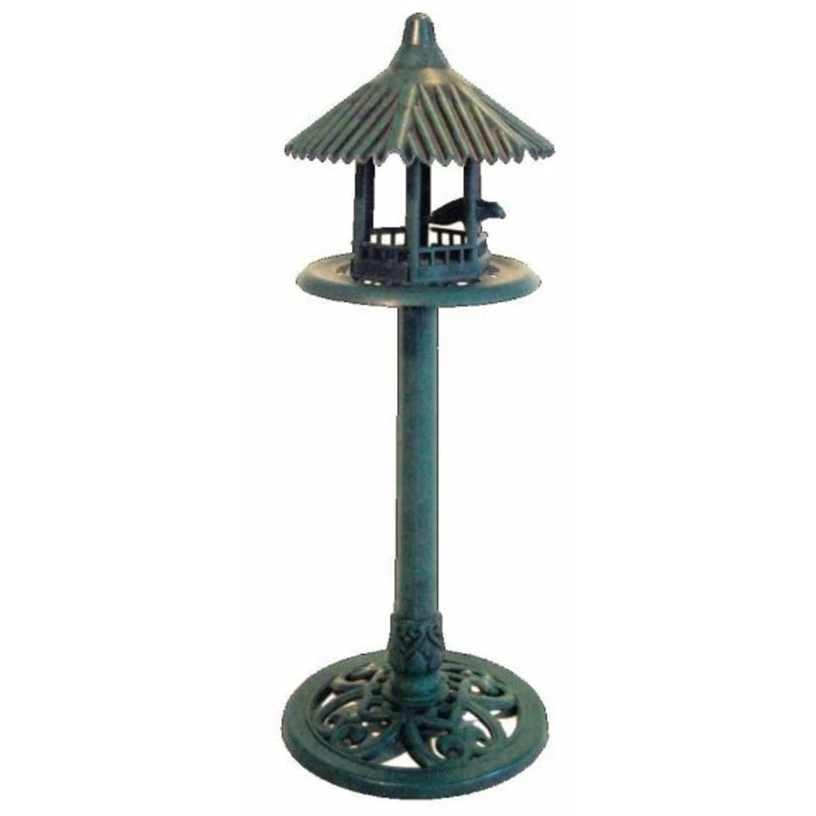De tuinstandaard met een hoogte van 95 cm zal perfect passen in uw tuin om de vogels eten te kunnen geven of gewoon als mooie decoratie. De standaard heeft een groenige kleur, bevat een voet en gemaakt in een sfeervolle stijl.