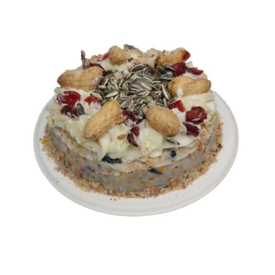 Lekker kleine slagroomtaart met cranberry en zaden voor de vogels waar zij lekker van kunnen eten in je tuin. Op de taart zitten allerlei soorten zaden en deze is ook nog eens bedekt met cranberry waardoor hier veel buitenvogels op af zullen komen. Hierdoor heb je straks allerlei verschillende soorten buitenvogels in je tuin.